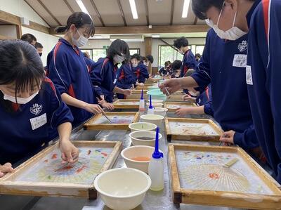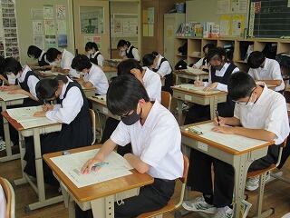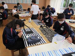 美術の授業では,上履きのデッサンをしています。作品が完成したら,12月に国道6号の地下道に飾る(6国プロジェクト)予定です。