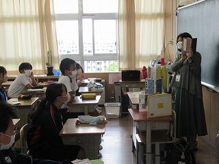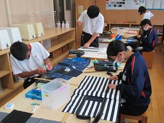 家庭科の授業では,トートバックの製作を始めました。しつけ縫いやミシン縫いを上手にして,お気に入りのバックが完成するとよいですね。技術科の授業では,水菜の水耕栽培を始めました。どうしたらよく育つか調べて種をまきました。