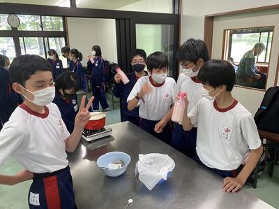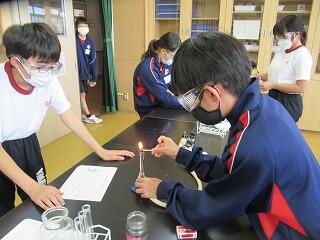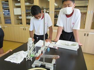 理科の授業では,酸化銅を還元する実験を行いました。理科担当教員と理科教育支援員にアドバイスしてもらいながら,銅を取り出すことができました。 酸化銅 + 炭 → 銅 + 二酸化炭素