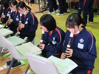 音楽の授業では,アルトリコーダーの演奏を行っています。ソプラノリコーダーとは運指が異なるのが難しいところですが,音域バランスの良さや音色の美しさ,柔らかさが聞き心地の良い楽器です。