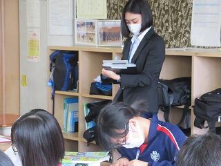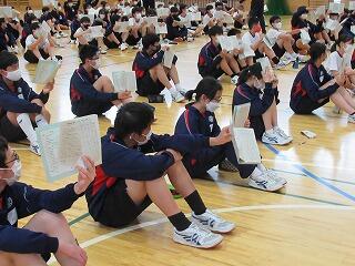 今日は,3,2年生に引き続き1年生で読み聞かせを行いました。中学校で読み聞かせを実施しているところは少ないと思いますが,いろいろな本を紹介していただくことで,読書に興味をもってもらえると嬉しいです。