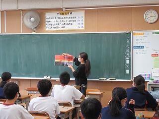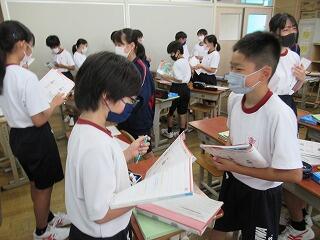 1年生の社会は,世界各地の人々の生活と環境に関する学習で,イヌイットの生活について調べています。2年生の国語は,手紙文の学習で,林間学校でお世話になった方へお礼状を書きました。