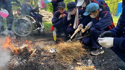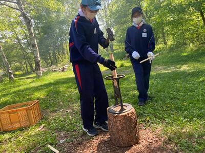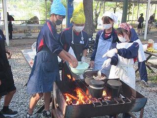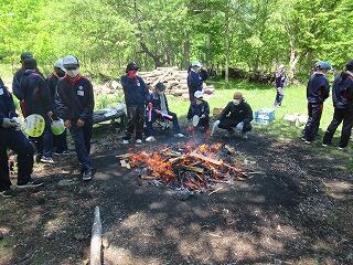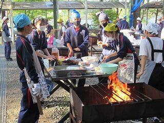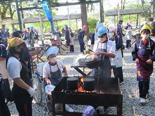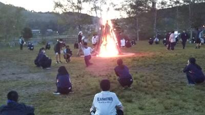 全員無事、元気に入館しました! 今日はこれから飯盒炊爨とキャンプファイヤーが待っています!