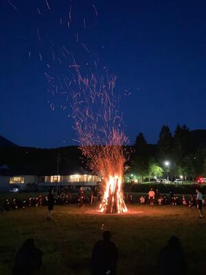 キャンプファイヤーでは大きな花火が打ち上がり、盛り上がりは最高潮に!