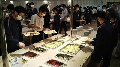 夕食はバイキング、よく働いて、おなかが空いていることでしょう!