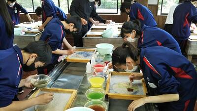 今朝はあいにくの雨模様でしたが、紙漉き体験の頃には雨も上がりました。