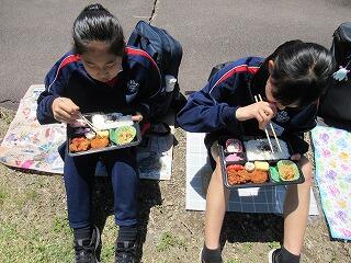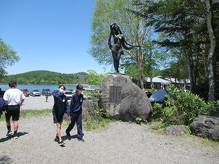 無事、最初の目的地・女神湖畔に到着し、お弁当を食べました。