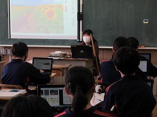技術の授業で栽培しいる水菜が発芽しました。国語の授業では,「立夏杯」と称して,ひまわりの画像を見て一句詠んで端末から投稿しました。