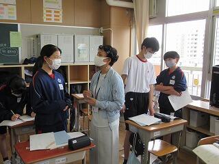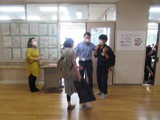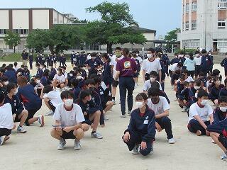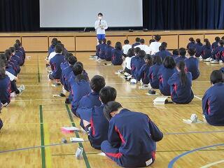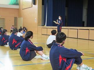 震度5強以上の地震などの非常変災や事件・事故が発生した際は,引き渡しでの下校となります。小学校に兄弟がいる生徒も多く,今回は小中学校合同での引き渡し訓練を行いました。引き取りのシミュレーションや通学路の安全確認をお願いします。