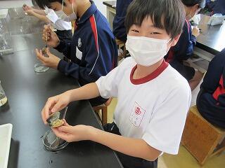 1年生の理科の授業では,軟体動物のアサリを観察して,からだのつくりを調べました。