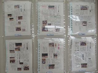1年生の廊下には,スポーツフェスティバルの個人新聞が掲示されています。教室環境づくりで切り絵に取り組んでいるクラスもあります。