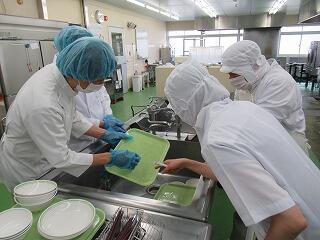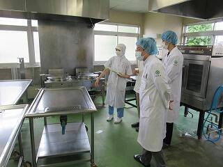 給食室の衛生検査を行いました。食器の洗浄状況や水道水を試薬を使って調べたり,給食室の管理状況を点検したりしました。柏中の給食室は適切に衛生管理されていることを確認しました。