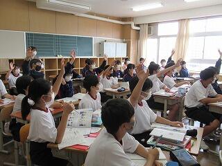 各学級には今年度の始めに今年の目標を書いて掲示しています。今学期も後約1ヶ月となりました。目標に近づけているでしょうか!? 授業中は,たくさん手が挙がり,みんな一生懸命に学んでいます。