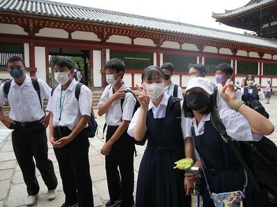 興福寺・五重塔をバックに集合写真を撮りました。昼食後は東大寺を見学し、そのまま班別行動に移ります。