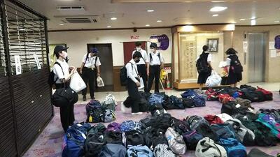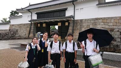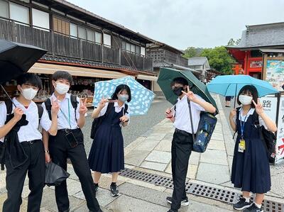 能楽堂の帰りは大雨で、手足がずぶ濡れになってしまった生徒もいましたが、ホテルでの入浴で温まりました。
