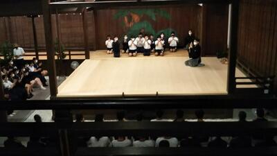 班別行動を終え、早めの食事をとった後は、大江能楽堂での能楽狂言鑑賞です!