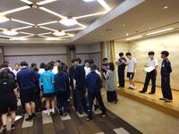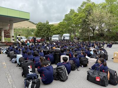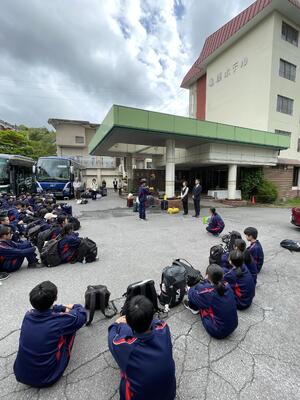 引率してくださる先生方や部会長、実行委員から話がありました。また、隊形確認も全員で行いました。