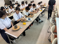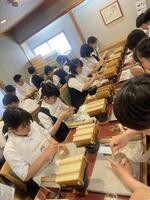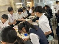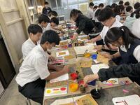現在2年生の美術授業で、「柏中学校の紹介」として校内の写真とキャッチコピーを入れた作品を作っています。