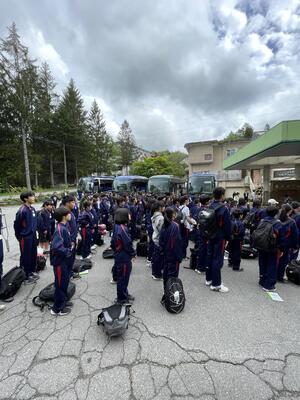 出発式後、全員バスに乗り、7:05に長野に向かって出発しました。