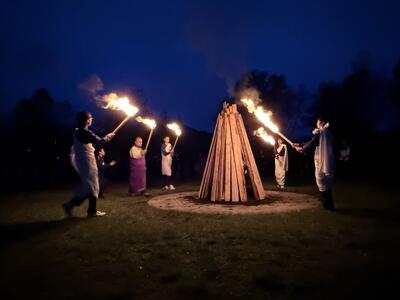 火を囲みながら、「誓いの言葉」を各クラス声を揃えて宣言しました。