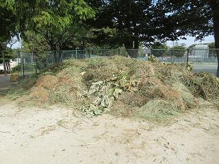 今年度3回目のPTAによる除草作業を行いました。刈り取った草が山のように積み上げられ,だいぶきれいになってきました。ご協力ありがとうございました。