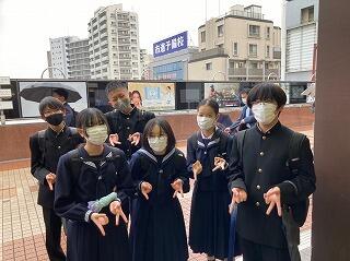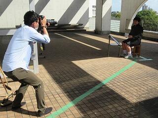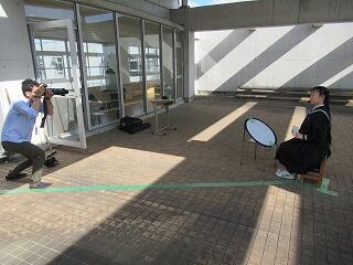 3年生は卒業アルバム用の写真撮影を行いました。マスクを外してとっておきの笑顔をカメラに向けていました。