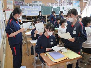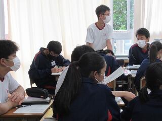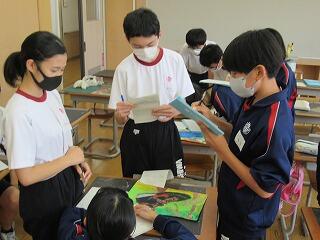 1年生の技術では,消費者が買いたくなるような鶏の生産から販売までの計画について話し合いながら学習を進めました。国語では,古文の竹取物語を読み,かぐや姫を一番幸せにできるのは誰なのか議論しました。