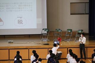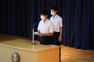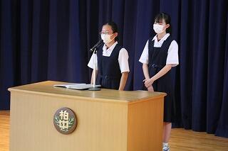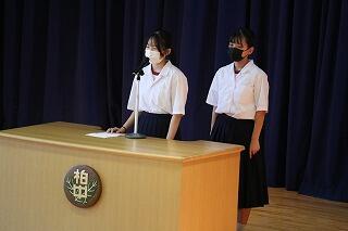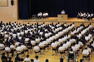 生徒会役員選挙立会演説会が行われ,会長,副会長,書記,会計の7名の新役員が決定しました。ました。柏市選挙管理委員会の方にご来校いただき,政治や選挙についての講話をいただきました。