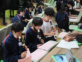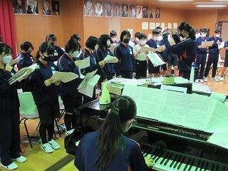 音楽では,柏翔祭に向けて合唱の練習に取り組んでいます。合唱はコロナ禍で2年間中止していたので,どの学年にとっても初めての行事で,試行錯誤しながら頑張っています。