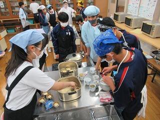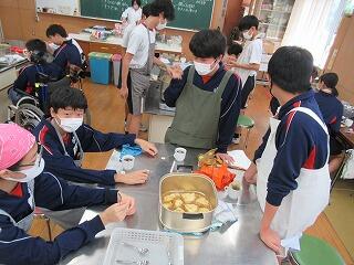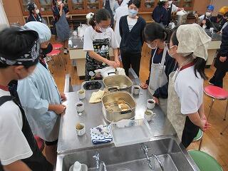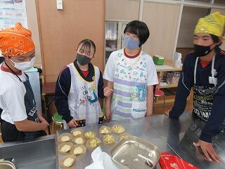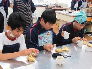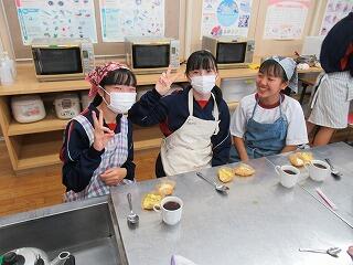 2年生の家庭では,米粉を使ってサツマイモ入りの蒸しパンを作りました。紅茶を入れてティータイムを楽しみました。