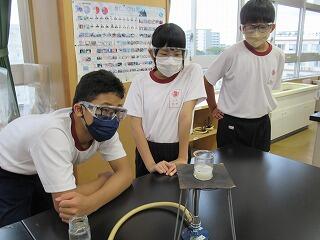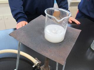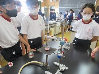 理科の授業では,ロウが状態変化したときの体積や質量について調べました。ガスバーナーで加熱して液体にしたときの質量を量ったり,固まった時に真ん中の部分がへこんでいることを観察しました。