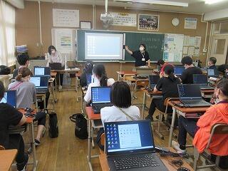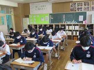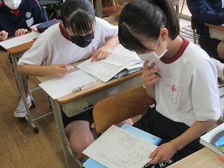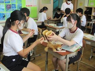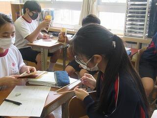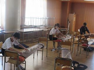 2年生の英語では,「Gon, the Little Fox」,小学校の国語で学習した「ごんぎつね」を英語で読んでいました。家庭では,シャツにアイロンをかけました。1年生の理科では,赤ワインを蒸留してエタノールを取り出す実験を行いました。3年生の音楽では,これまでの箏の練習の成果を実技のテストも兼ねてクラスの仲間に演奏を披露していました。