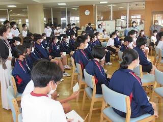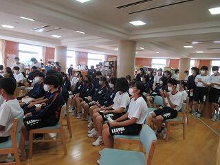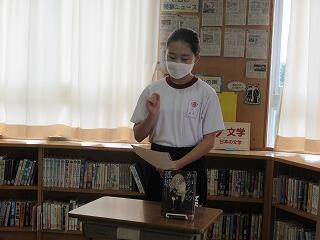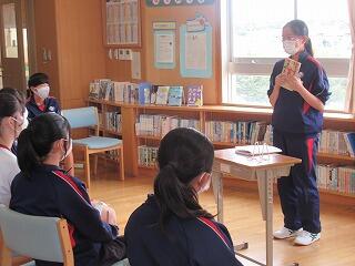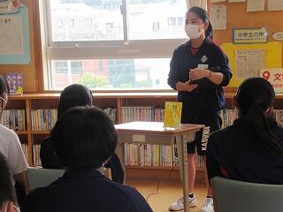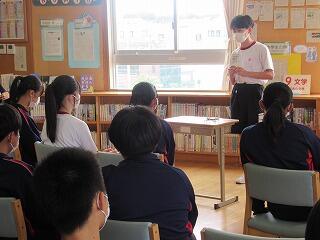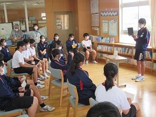 学級でのバトルを勝ち抜いた学級代表5名によるビブリオバトルが昼休みに図書室で行われました。3年生だけでなく1,2年生も含めて約150人が聴衆となり,投票によって2組代表がNO1バトラーとなりました。5名ともに深く読み込んでいて,本の内容や魅力がよく伝わってきました。この後,1,2年生の代表とバトルして,学校代表が決定します。