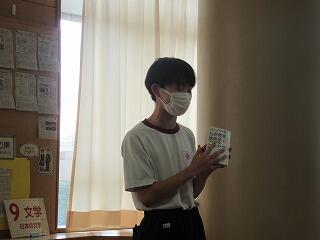 学年代表によるビブリオバトルを行いました。1,2年生も立派な書評を披露し,学年差を感じないバトルとなりましたが,観客となった生徒の投票により3年生が柏中NO1バトラーに選出されました。