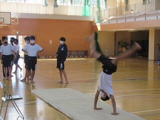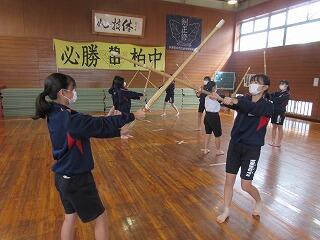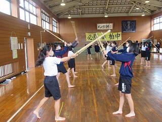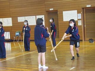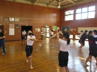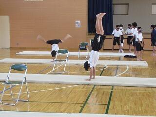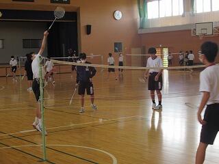 女子は,武道の学習として剣道に取り組み,心技体を鍛えています。3年男子は,「アルティメット」というフライングディスクを使ったアメフトのような競技に取り組んでいます。身体接触が禁止されているため,誰とでも気軽にできるスポーツです。2年男子は,バドミントンに楽しそうに取り組んでいます。1年男子は,マット運動に取り組んでいます。コツを検索したり,動画を撮って出来栄えを確認したりしながら技を磨いています。