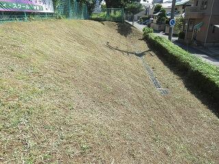 校地の南側斜面の除草を業者に依頼して行いました。背丈を超えるほど伸びていた所でしたので,すっきりとして気持ちが良いです。