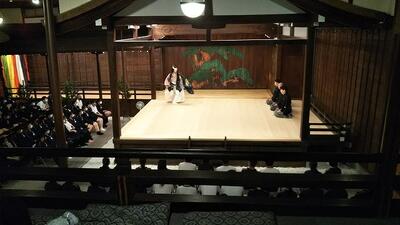 班別行動を終え、早めの食事をとった後は、大江能楽堂での能楽狂言鑑賞です!