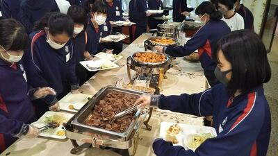 2年生の英語では,「Gon, the Little Fox」,小学校の国語で学習した「ごんぎつね」を英語で読んでいました。家庭では,シャツにアイロンをかけました。1年生の理科では,赤ワインを蒸留してエタノールを取り出す実験を行いました。3年生の音楽では,これまでの箏の練習の成果を実技のテストも兼ねてクラスの仲間に演奏を披露していました。