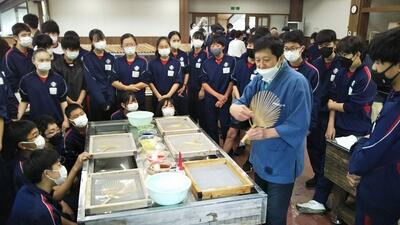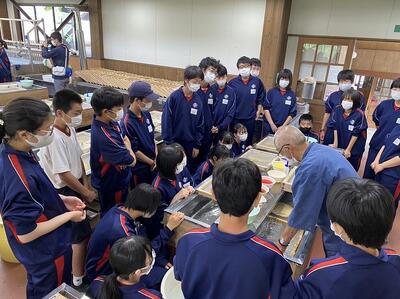 今朝はあいにくの雨模様でしたが、紙漉き体験の頃には雨も上がりました。