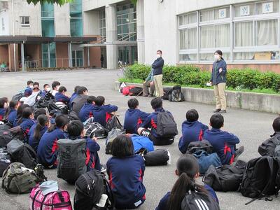 震度5強以上の地震などの非常変災や事件・事故が発生した際は,引き渡しでの下校となります。小学校に兄弟がいる生徒も多く,今回は小中学校合同での引き渡し訓練を行いました。引き取りのシミュレーションや通学路の安全確認をお願いします。
