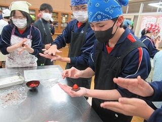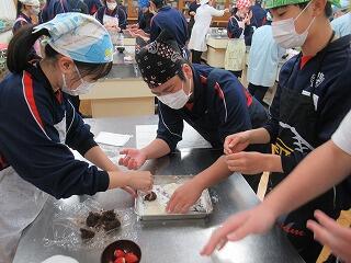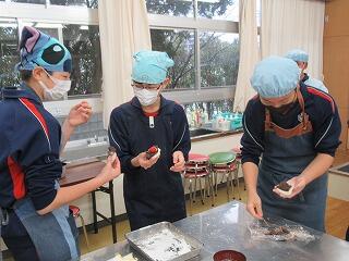 1,2年生は,今日と明日は定期テストです。今日は社会,国語,保健体育,技術家庭,明日は数学,英語,理科です。今年度最後の定期テストになります。3年生の家庭科の授業では,イチゴ大福づくりに挑戦しました。