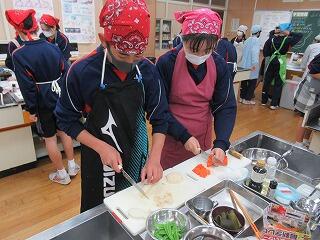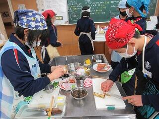 2/13,14に「さわやかあいさつウイーク」を実施しました。1学期に1回,2学期に2回,3学期に1回,青少協が中心に行っている活動です。地域や保護者の方が通学路に立ち,登校する生徒へ挨拶の声掛けを行っていただいています。1年生は家庭科の授業で調理実習を行いました。鮭のムニエル,筑前煮,かきたま汁をつくりました。