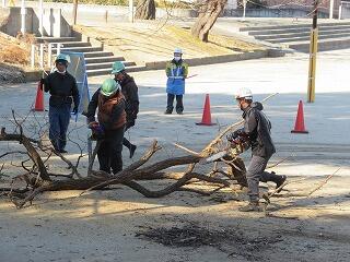 柏中は1万2千坪の広い敷地にたくさんの樹木がありますが,老木も多く立ち枯れているものは倒木の危険もあることから思い切って伐採することにしました。また,多行松は久しぶりに剪定をして清々しい姿になりました。
