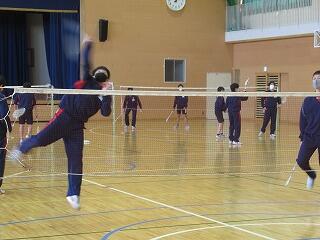 体育の授業では,持久走,バレーボール,バドミントン,卓球に取り組んでいます。