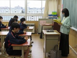 1年生の保健では,養護教諭が「がんの予防」について授業を行いました。前半はプレゼンテーション資料を使ってがんに対する理解を深め,最後にがんの予防に関する標語をつくりました。