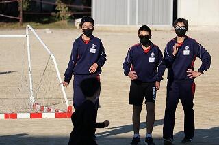 寒くなってきましたが,体育の授業では生徒は元気よく体を動かしています。持久走やティーバッティングでは,担任の先生も一緒に運動していました。