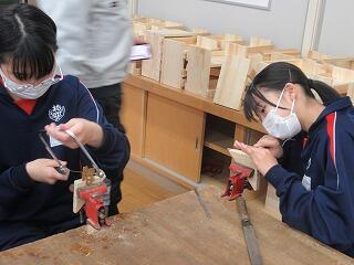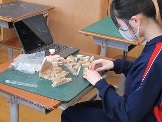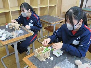 2年生の技術では,真鍮板を加工してキーホルダーを製作しています。3年生の美術では,マイドリームハウスを制作しています。どちらもずいぶんと形になってきました。
