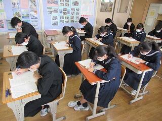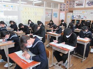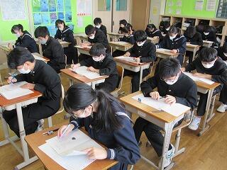 3年生は2学期2回目の定期テストです。進路希望もほぼ決まり,今学期最後の定期テストに一層真剣な面持ちで問題に取り組んでいました。今日は,国語,数学,理科を実施しました。