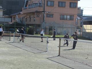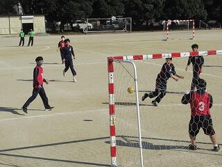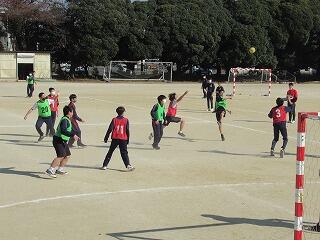 男子の体育は,3年生がハンドボール,2年がテニス,1年生が野球に取り組んでいます。