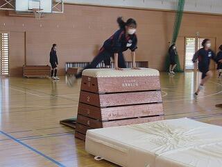 女子の体育は,マットや跳び箱での運動に取り組んでいます。